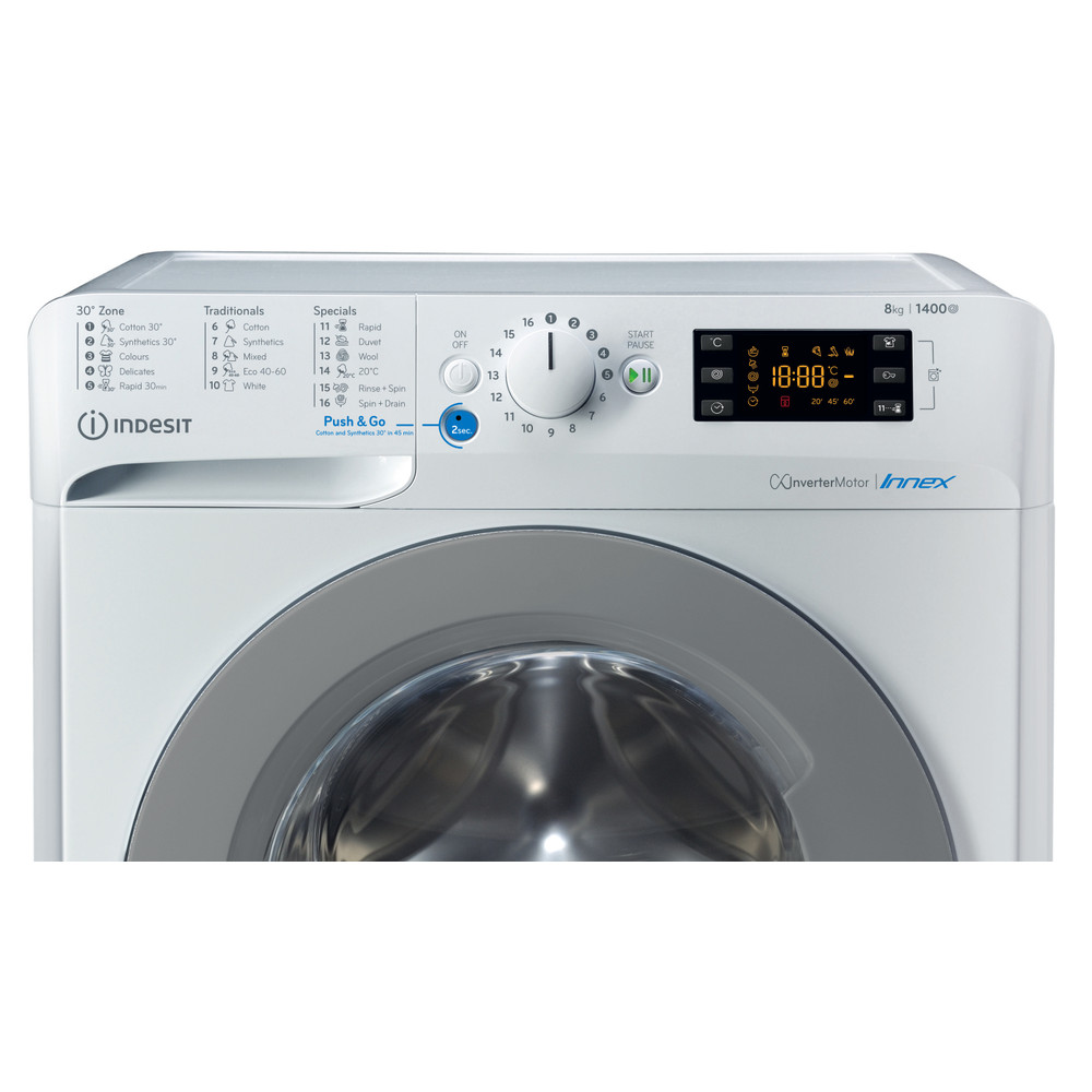 Karakteristike ove Indesit samostojeće perilice rublja s prednjim punjenjem su sljedeće: prostrani 8,0kg kapacitet. B energetski razred. Brzi i učinkoviti 1400 broj okretaja u minuti. Bijela boja.
