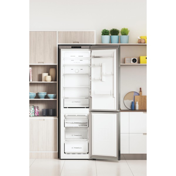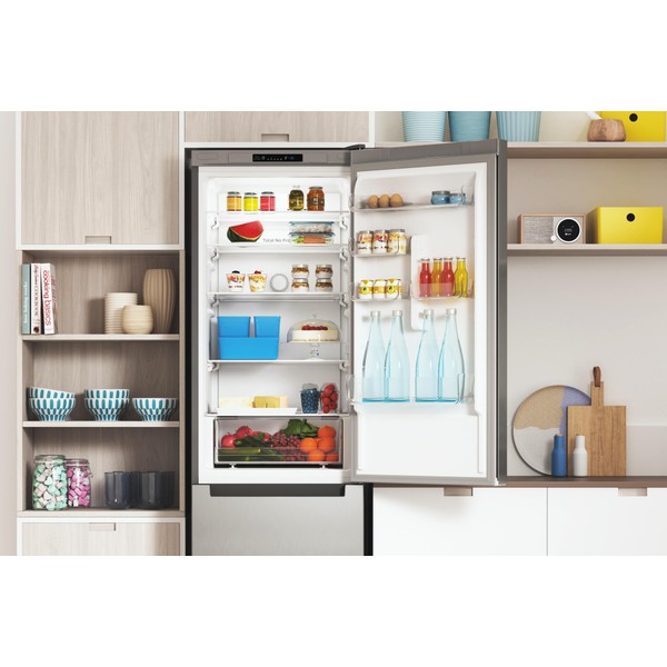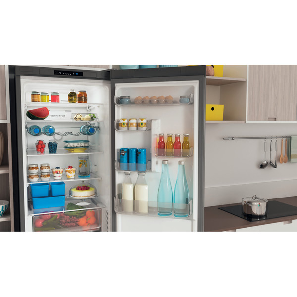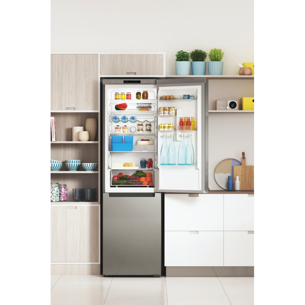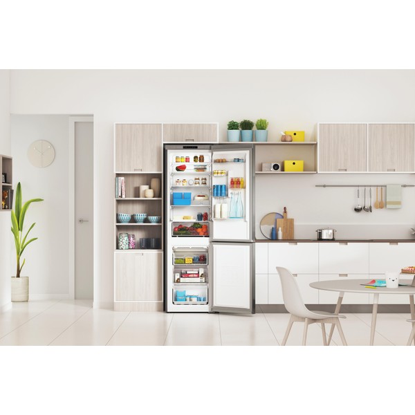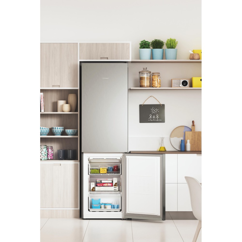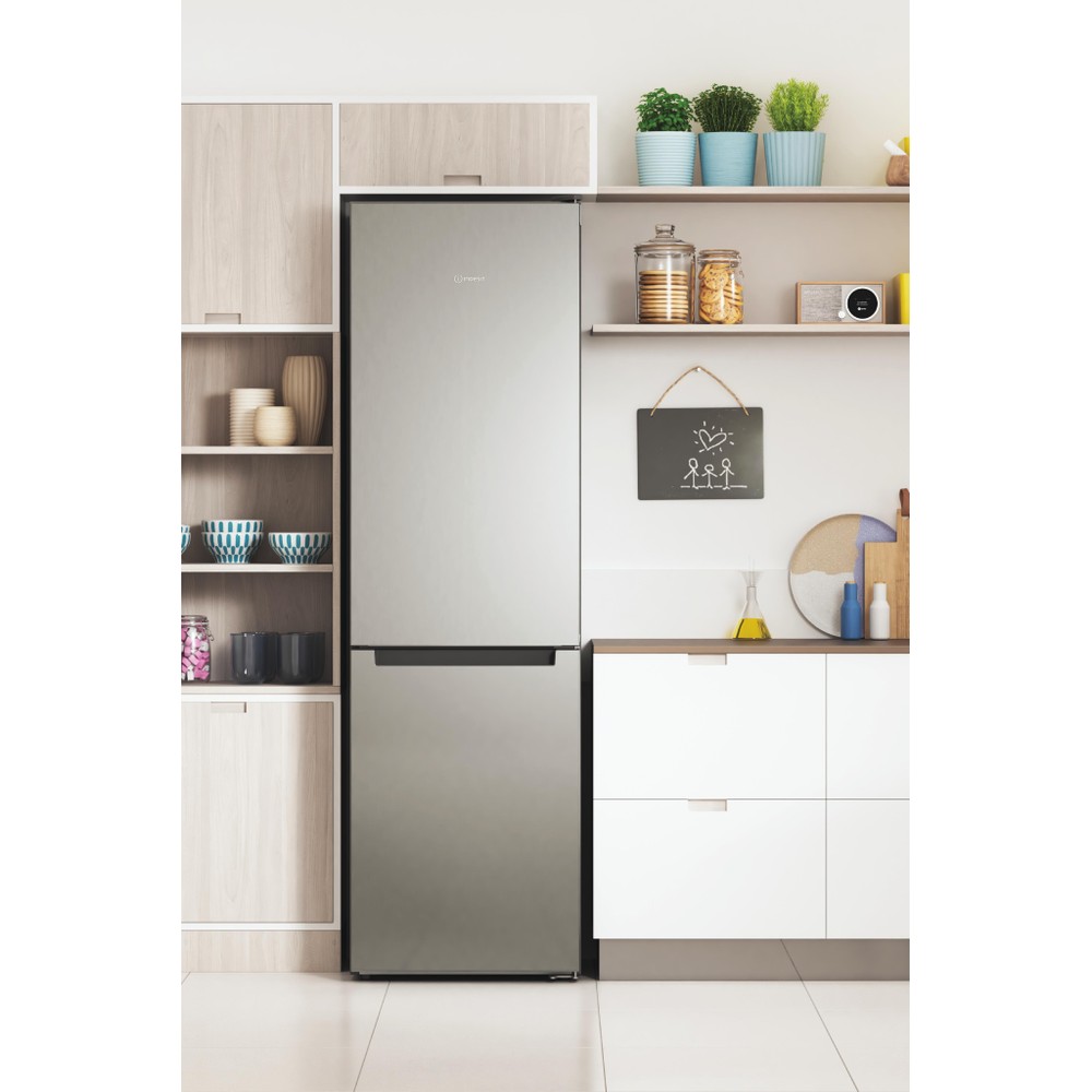 Karakteristike ovog Indesit samostojećeg hladnjaka sa zamrzivačem su: visoki uređaj koji odgovara svim potrebama vaše obitelji. Inox boja. Inox dizajn. No Frost tehnologija koje učinkovito sprječavaju stvaranje leda u vašem uređaju smanjujući razinu vlage. Staklene police, pružaju čvrstoću.