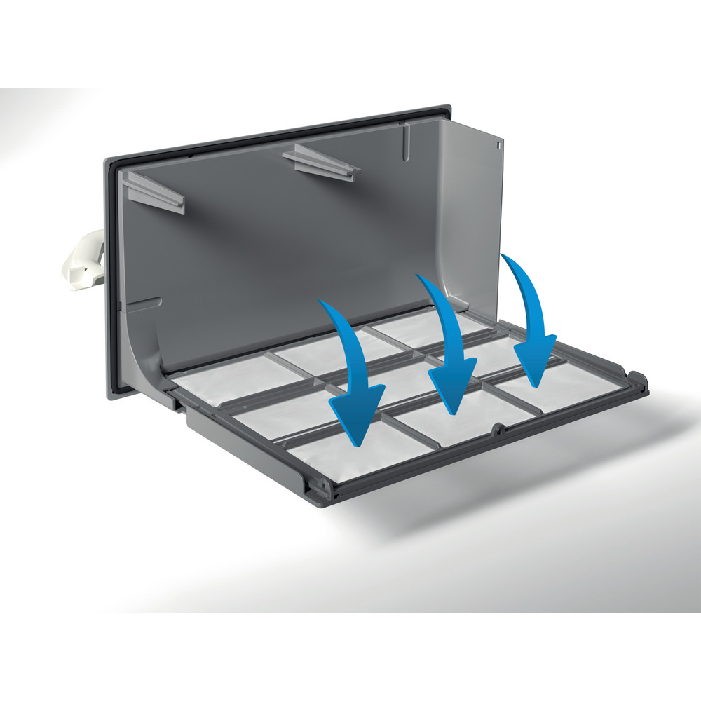Čišćenje kondenzatorskog filtera sada je brže i lakše u 3 jednostavna koraka: 1. Uklonite filter 2. Brzo očistite 3. Vratite ga na mjesto i to je to!